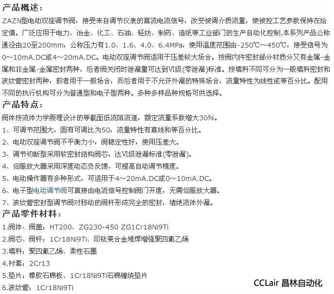 » ZAZN-10,電動雙座調(diào)節(jié)閥
