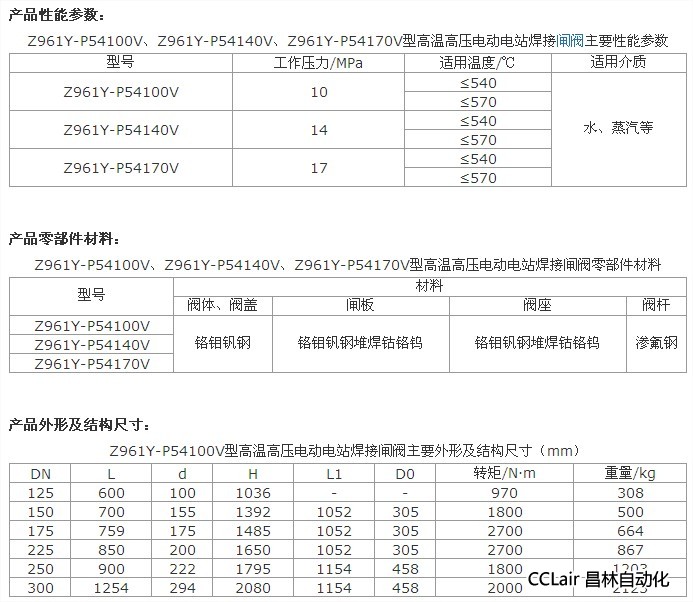 Z961Y-P54100V,Z961Y-P54140V,Z961Y-P54170V,高溫高壓電動電站焊接閘閥
