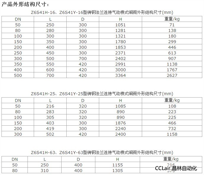 Z6S41H-16C,Z6S41Y-16C, Z6S41Y-16I,Z6S41Y-16P,Z6S41Y-16R,鑄鋼法蘭連接氣動楔式閘閥