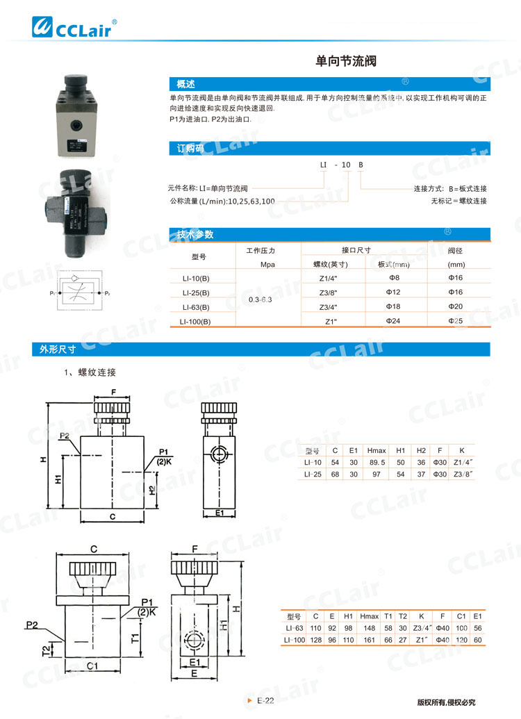 詳細(xì)信息 LI-10,LI-25,LI-63,LI-100,LI-10B,LI-25B,LI-63B,LI-100B,單向節(jié)流閥