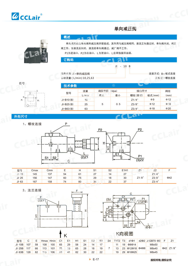 詳細信息 JI-B10,JI-B25,JI-B63,JI-B10B,JI-B25B,JI-B63B,單向減壓閥