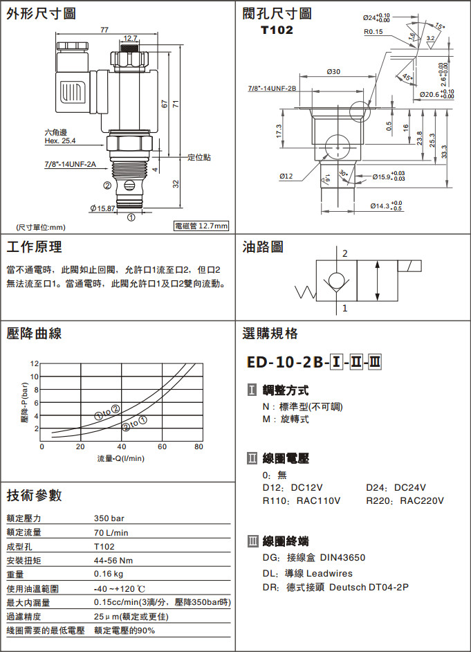ED-10-2B-M-D24-DL,ED-10-2B-M-R220-DL,ED-10-2B-M-0-DR,ED-10-2B-M-D12-DR,ED-10-2B-M-R110-DR, ED-10-2B-M-D24-DR,ED-10-2B-M-R220-DR,兩通常閉型電磁換向閥