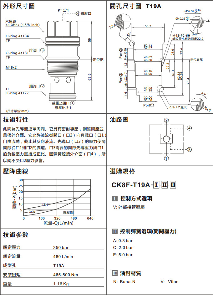 CK8F-T19A-VAN,CK8F-T19A-VCN,CK8F-T19A-VEN,CK8F-T19A-VAV,CK8F-T19A-VCV,CK8F-T19A-VEV,導(dǎo)壓開單向閥(外部導(dǎo)壓口)