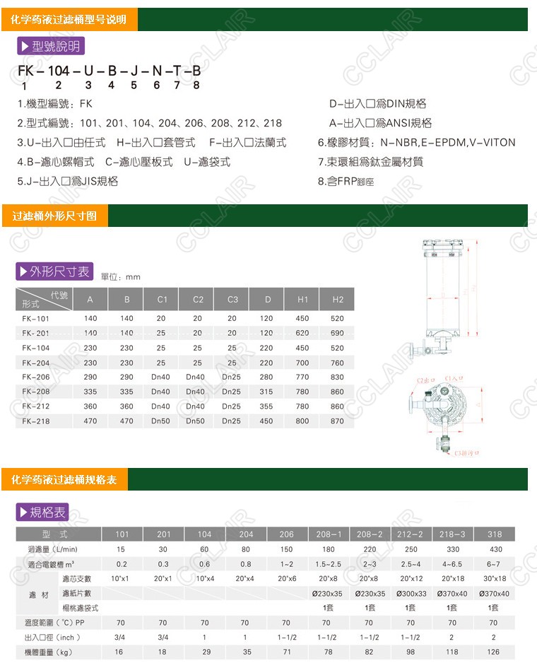 FK-101,FK-201,FK-104,FK-204,FK-206,FK-208,FK-212,FK-104-U-B-J-N-T-B,化學藥液過濾桶