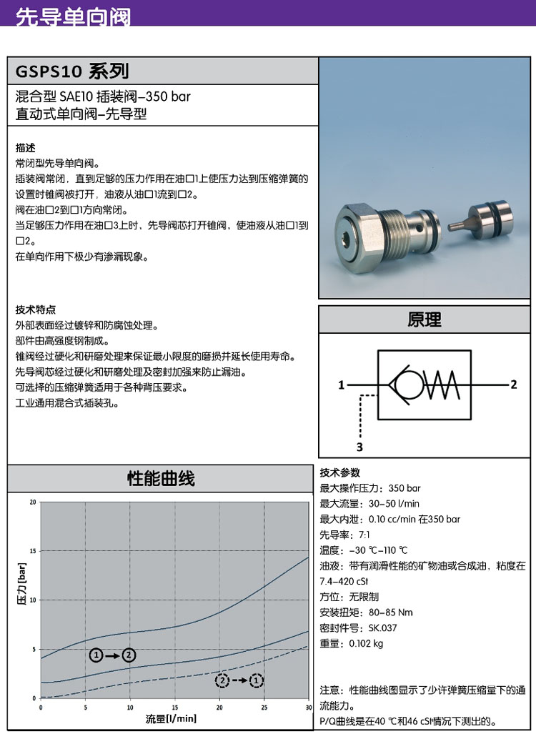 GSPS10,先導(dǎo)單向閥