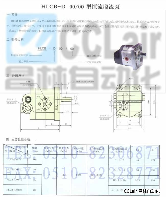 HLCB-00/00,HLCB-00/10,HLCB-00/16,HLCB-00/20,恒流溢流齒輪泵,
