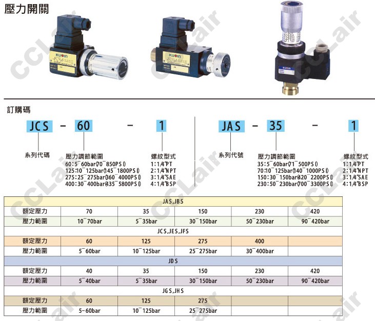 JCS-60,JCS-125,JCS-275,JCS-400,JAS-35,JAS-70,JAS-150,JAS-230,JCS-60-4,國(guó)鷹KUOIN壓力開(kāi)關(guān) |