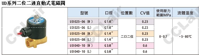UD025-06,UD025-08,UD025-10,UD025-06W,UD025-08L,UD025-10L,國鷹KUOIN二位二通直動式電磁閥