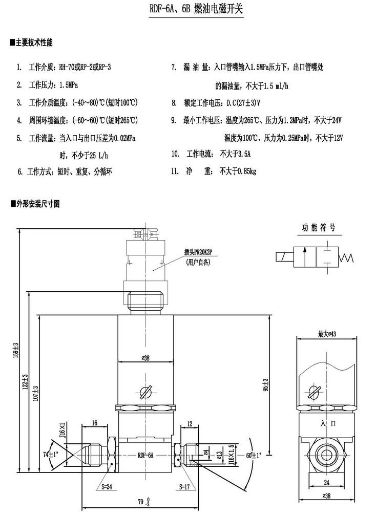 詳細(xì)信息 RDF-6A,RDF-6B,燃油電磁開關(guān)