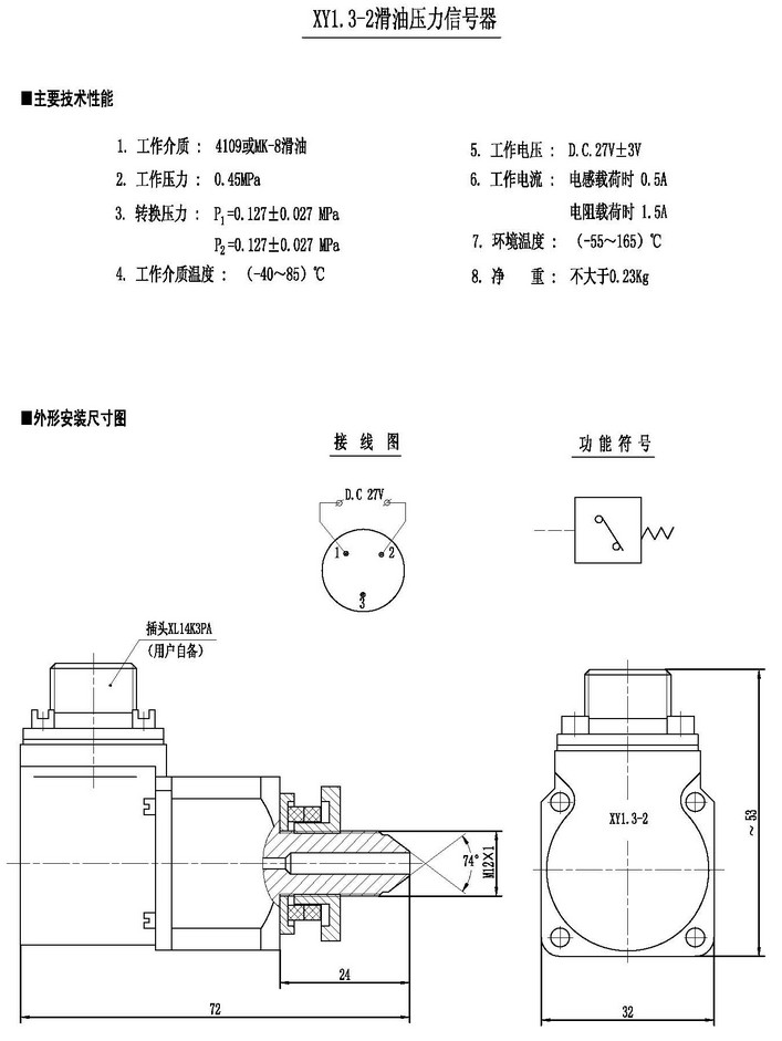 詳細(xì)信息 XY1.3-2,滑油壓力信號(hào)器