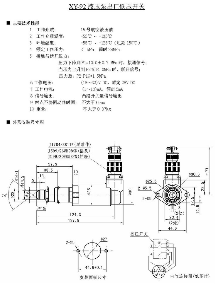 詳細(xì)信息 XY-92,液壓泵出口低壓開關(guān)