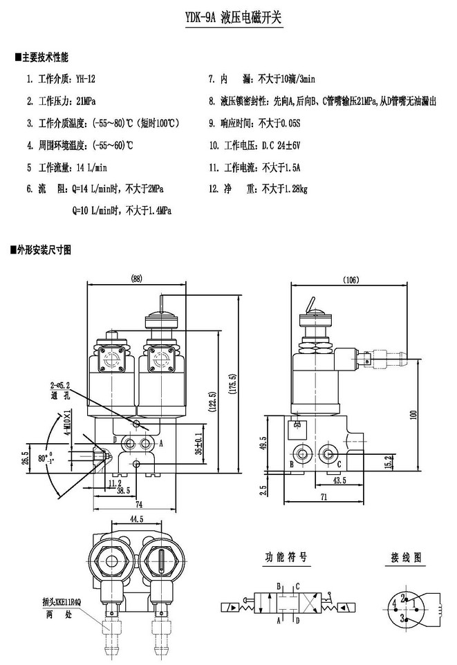 型號: YDK-9A,液壓電磁開關