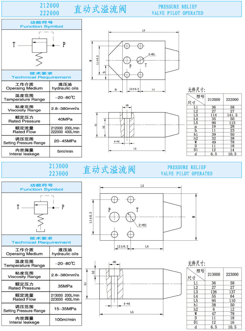 詳細(xì)信息 212000,222000,213000,223000,直動(dòng)式溢流閥