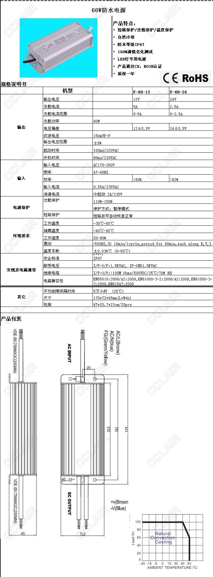 » F-60-12,F-60-24,F-60,鋁殼防水電源