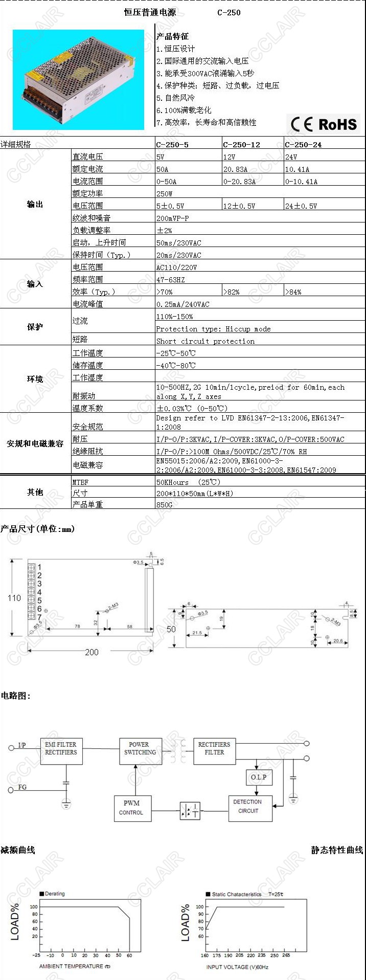 C-250-5,C-250-12,C-250-24,C-250,恒壓普通電源