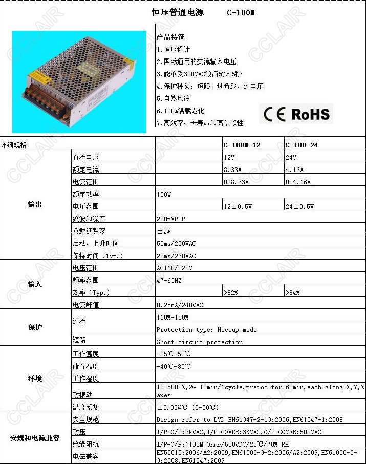 » C-100M-12,C-100M-24,C-100M,恒壓普通電源