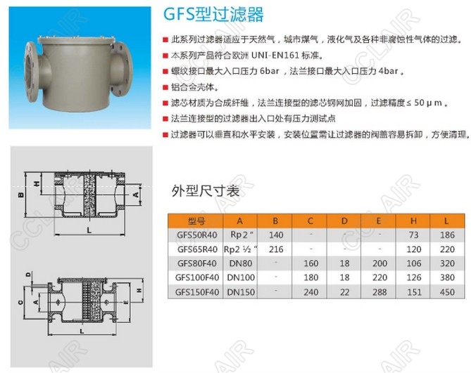 詳細(xì)信息 GFS50R40,GFS65R40,GF80F40,GFS100F40,GFS150F40,過濾器