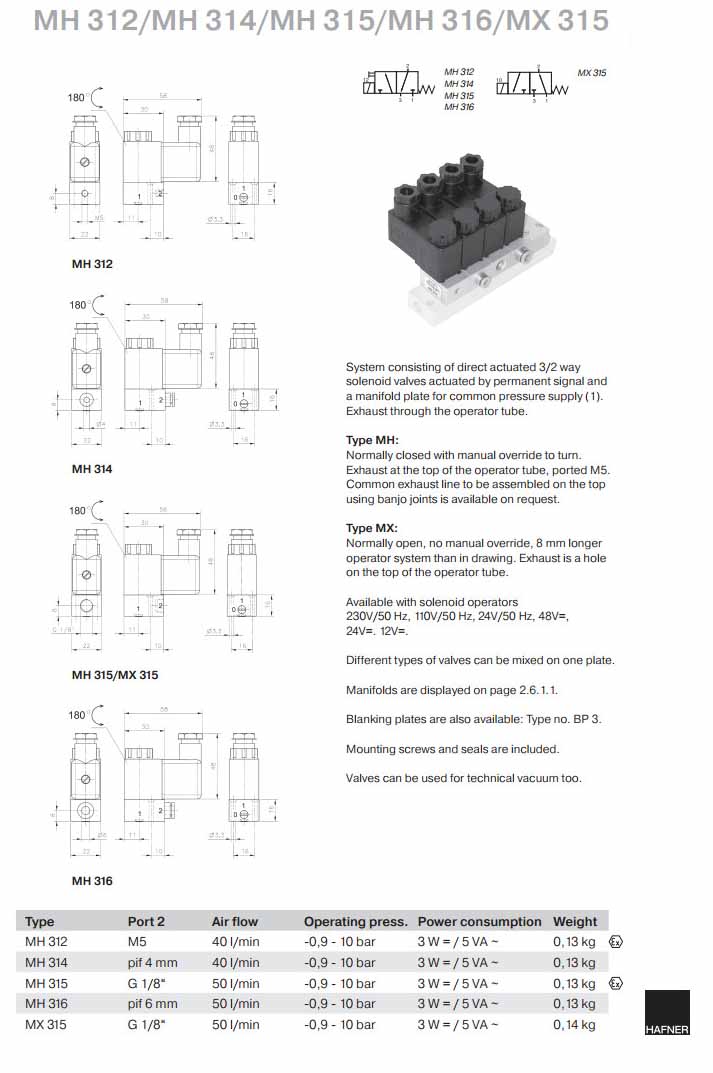 MH312,MH314,MH315,MH316,MX315,Hafner電磁閥