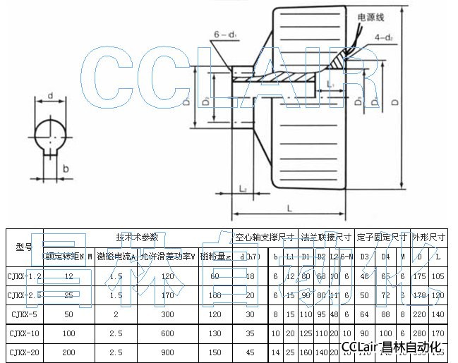 CJKX-1.2,CJKX-2.5,磁粉離合器(CJKX-型空心軸支撐、輸出、外殼旋轉(zhuǎn)式磁粉離合器)