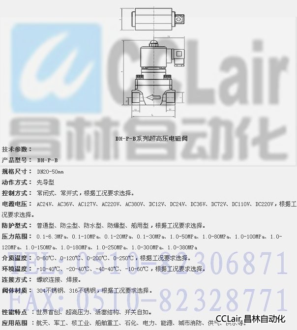 詳細(xì)信息 DH-P-B20,DH-P-B25,DH-P-B40,DH-P-B50,超高壓電磁閥