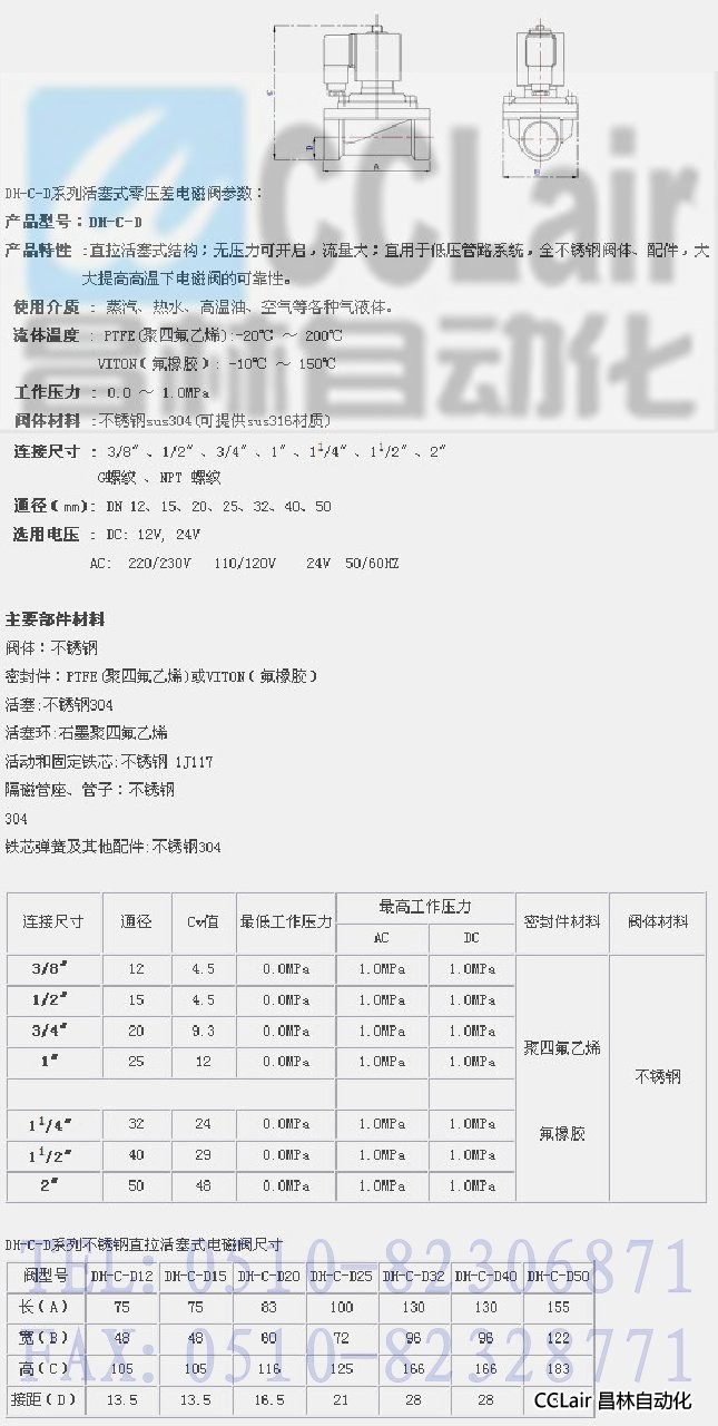 DH-C-D12,DH-C-D15,DH-C-D20,DH-C-D25,DH-C-D32,DH-C-D40,DH-C-D50,零壓差電磁閥