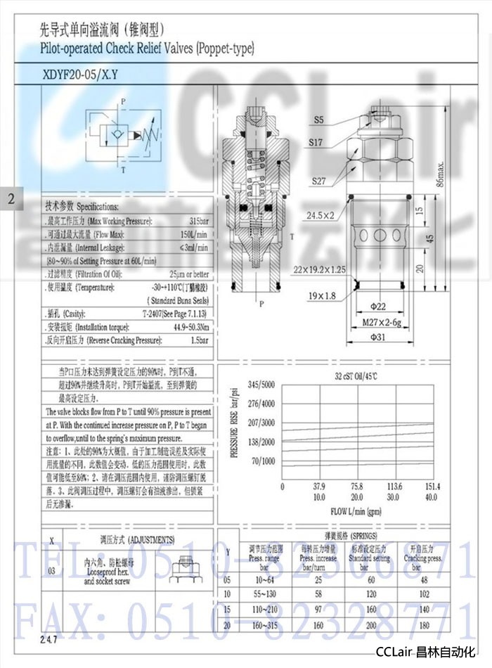 XDYF20-05,先導(dǎo)式單向溢流閥