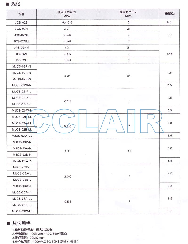 JCD-02,JCS-02,JPS-02,MJCS-02,MJCS-03,壓力繼電器