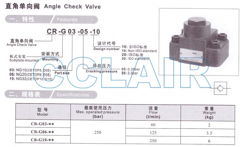 CR-G03-05-10,CR-G03-50-10,CR-G06-05-10,CR-G06-50-10,CR-G10-05-10,CR-G10-50-10,直角單向閥