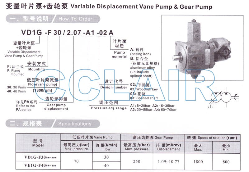 VD1G-F30,VE1G-F40,VD1G-F30/2.07-A1-02A,VD1G-F30/2.07-A2-02A,VD1G-F30/2.07-A3-02A,VD1G-F30/2.07-A4-02A,變量葉片泵+齒輪泵