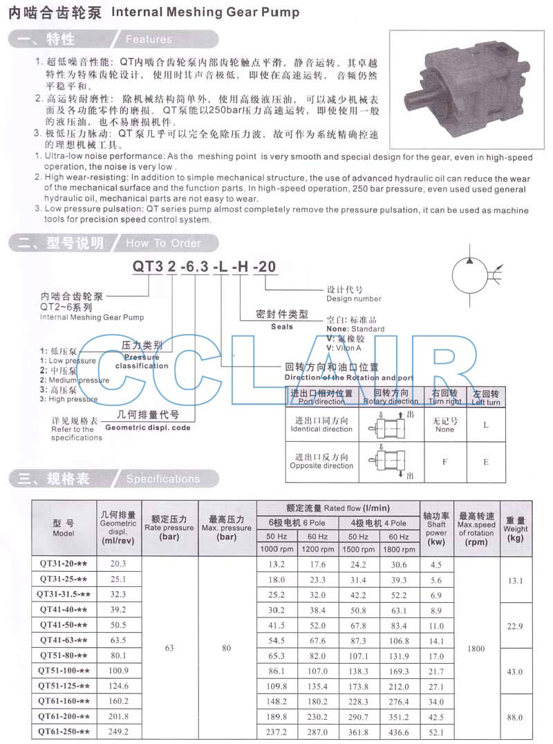 QT31,QT41,QT51,QT61,QT22,QT32,QT42,QT52,QT62,QT23,QT33,QT43,QT53,QT63,QT22-4-L-H-20,內(nèi)嚙合齒輪泵