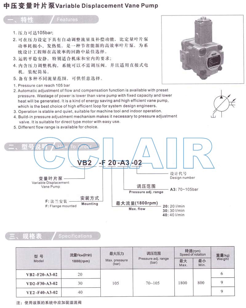 詳細信息 VB2-F20-A3-02,VD2-F30-A3-02,VE2-F40-A3-02,中壓變量葉片泵 無錫昌林