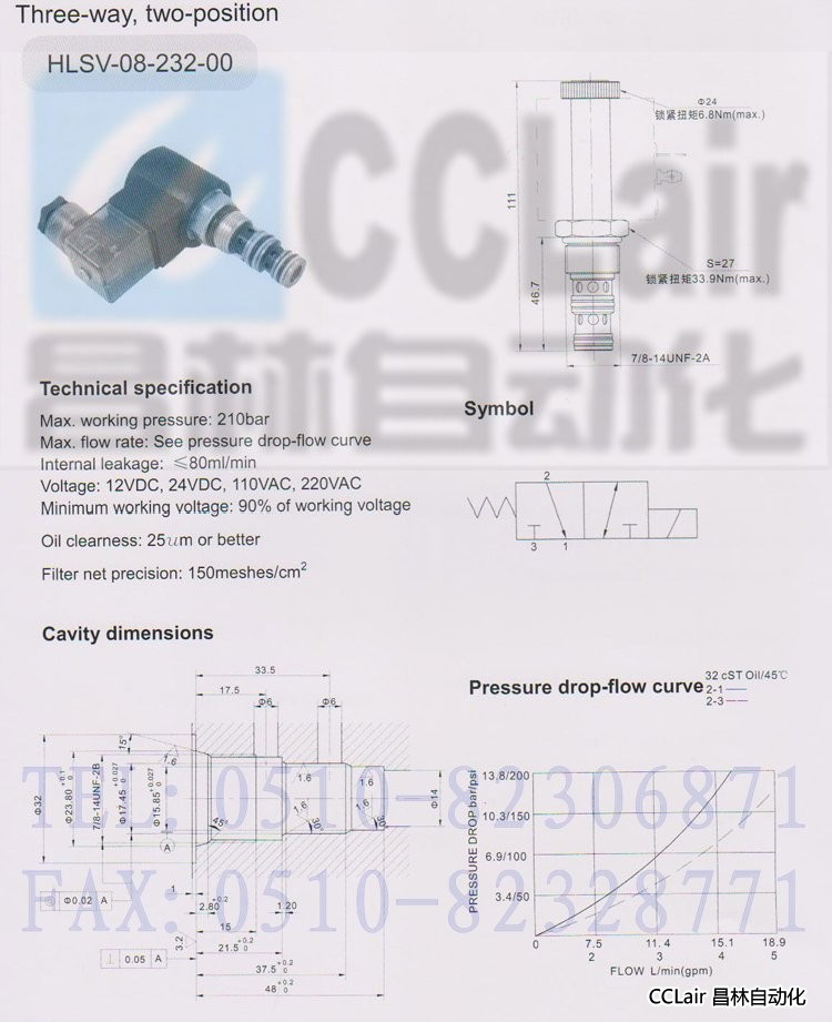 產(chǎn)品: 瀏覽次數(shù):562HLSV-08-232-00,二位三通電磁閥