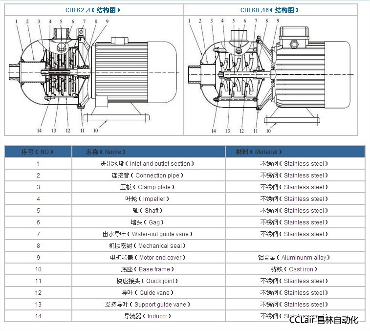 CHL,CHLK和CHLF(T)不銹鋼輕型多級(jí)離心泵采用了免修機(jī)械密封。泵的過(guò)流部件均采用不銹鋼材料(304或316)制成,具有低噪音,耐輕腐蝕,外形美觀、體積小、重量輕、使用壽命長(zhǎng)等特點(diǎn)。