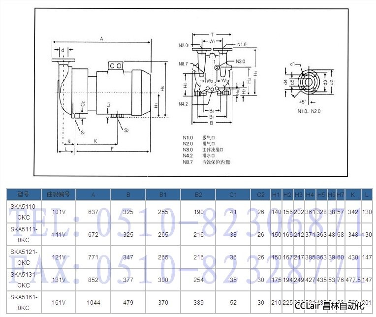 SKA型水環(huán)式真空泵(簡稱:SKA真空泵),適于抽除氣體和水蒸汽。吸氣壓力可以達到33mbar絕壓(97%真空度)當真空泵在吸氣壓力低于80mbar的狀態(tài)下長期工作時,應聯(lián)接汽蝕保護管以對泵進行保護,如配大氣噴射器(見附件表)吸氣壓力可達10mbar,噴射器可直接裝在真空泵上。作為壓縮機用時,其壓力最大至0.26mbar(絕壓)。