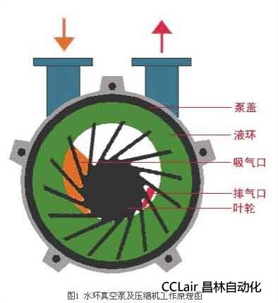 SKA型水環(huán)式真空泵如圖(1)所示葉輪3偏心地安裝在泵體之內,起動時向泵內注入一定高度的水,因此當葉輪3旋轉時,水受離心力的作用而在泵體內壁形成一旋轉水環(huán)1,水環(huán)下部內表面與輪轂相切,沿箭頭方向旋轉,在前半轉過程中,SKA型水環(huán)式真空泵水環(huán)內表面逐漸與輪轂脫離,因此在葉輪葉片間與水環(huán)形成封閉空間,隨著葉輪的旋轉,該空間逐漸擴大,空間氣體壓力降低,氣體自圓盤吸氣口被吸入;在后半轉過程中,水環(huán)內表面逐漸與輪轂靠近,葉片間的空間逐漸縮小,空間氣體壓力升高,高于排氣口壓力時,葉片間的氣體自圓盤排氣口被排出。如此葉輪每轉動一周,葉片間的空間吸排氣一次,許多空間不停地工作,SKA型水環(huán)式真空泵就連續(xù)不斷地抽吸或壓送氣體。
