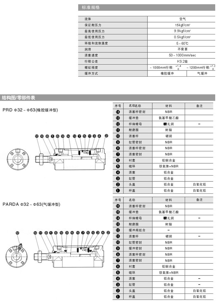 PRDB32-25,PRDB32-50,PRDB32-75,PRDBA50-75,PRDBA50-100,PRDBA50-125,圓柱形氣缸PRD