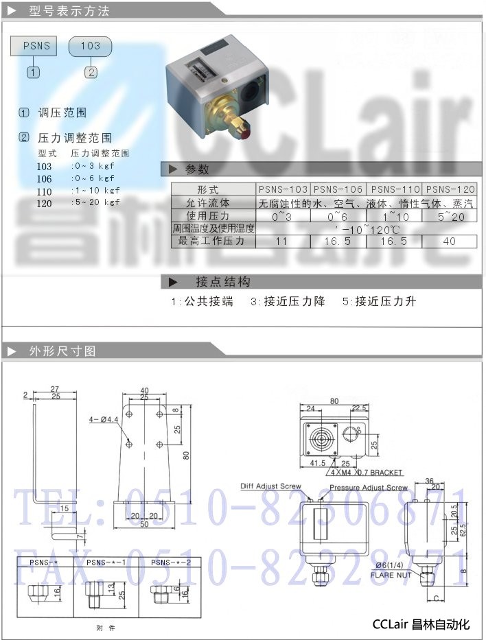 詳細(xì)信息 PSNS-103,PSNS-106,PSNS-110,PSNS-120,壓力開關(guān)