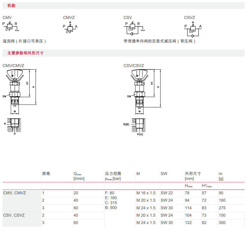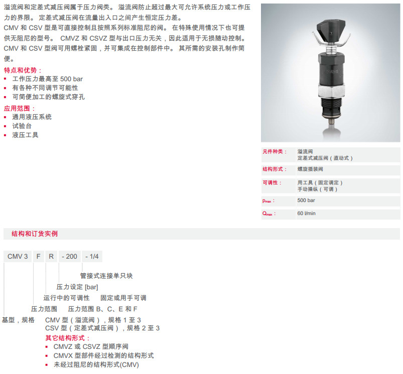 詳細信息 CMV1BR-200-1/4,CMV2CR-200-1/4,CMV3ER-200-1/4,CSV2FR-200-1/4,壓力閥