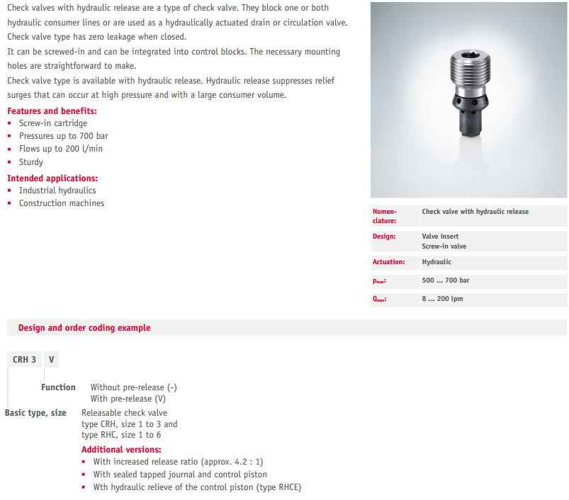 詳細(xì)信息 CRH1V,CRH2V,CRH3V,RHC1V,RHC2V,RHC3V,RHC4V,RHC5V,RHC6V,液控單向閥