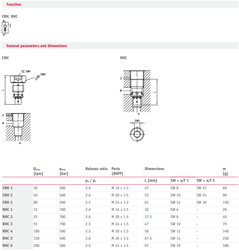 CRH1V,CRH2V,CRH3V,RHC1V,RHC2V,RHC3V,RHC4V,RHC5V,RHC6V,液控單向閥