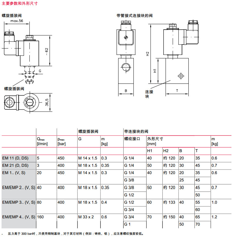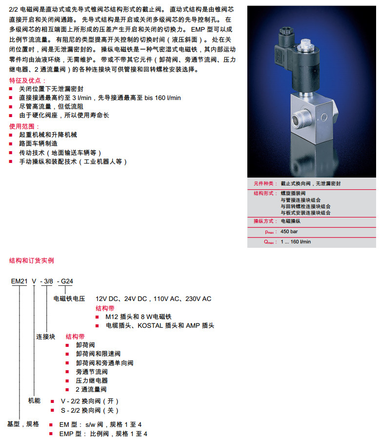 詳細(xì)信息 EM21V-3/8-G24,EM21S-3/8-G24,EM11V-3/8-G12,EM11S-3/8-G12,通螺旋式換向閥