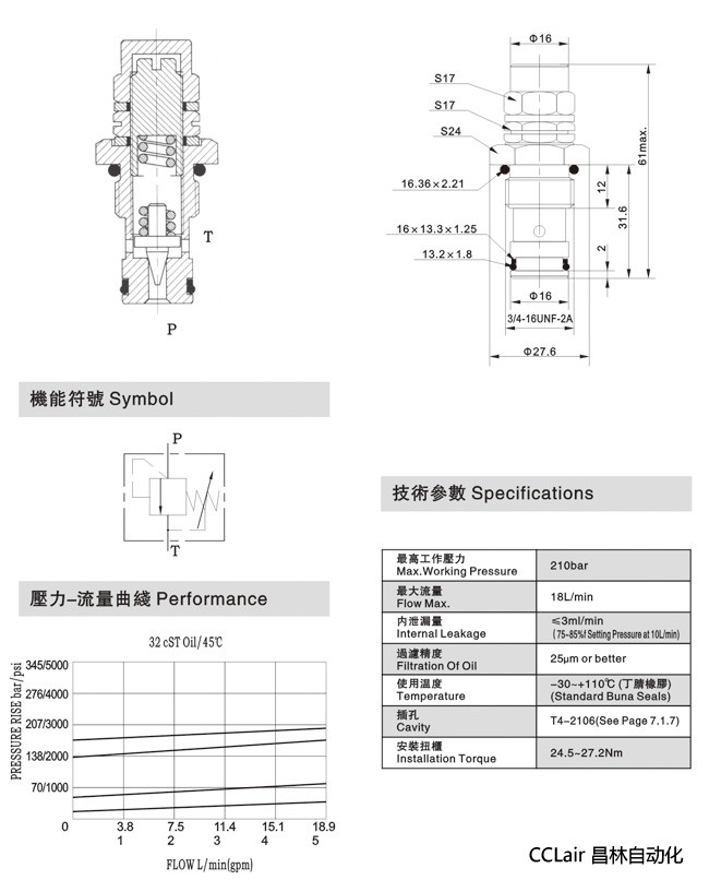 液壓閥技術(shù)參數(shù):