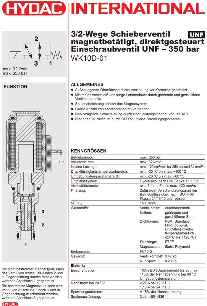 首頁 > 產(chǎn)品&解決方案 > WK10D-01-C-N-24DG,WK10D-01-C-N-230AG,HYDAC二位三通方向滑閥