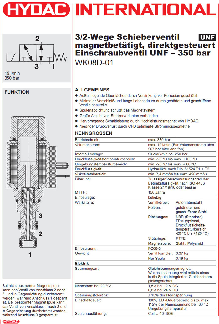 首頁 > 產(chǎn)品&解決方案 > WK08D-01-C-N-24DG,WK08D-01-C-N-230AG,HYDAC二位三通方向滑閥