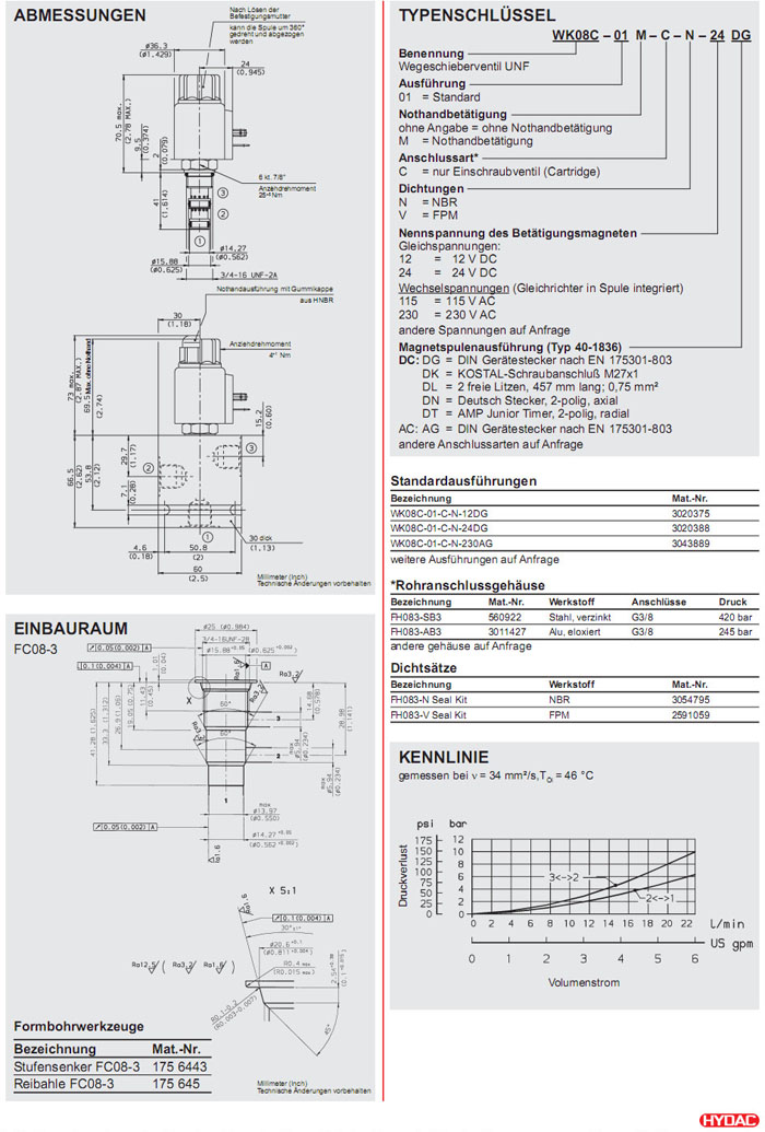 WK08C-01-C-N-12DG,WK08C-01-C-N-24DG,WK08C-01-C-N-230AG,HYDAC二位三通方向滑閥