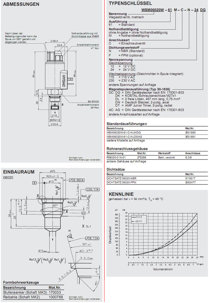 WSM06020W-61-C-N-24DG,WSM06020W-61-C-N-230AG,HYDAC電磁2/2方向座閥