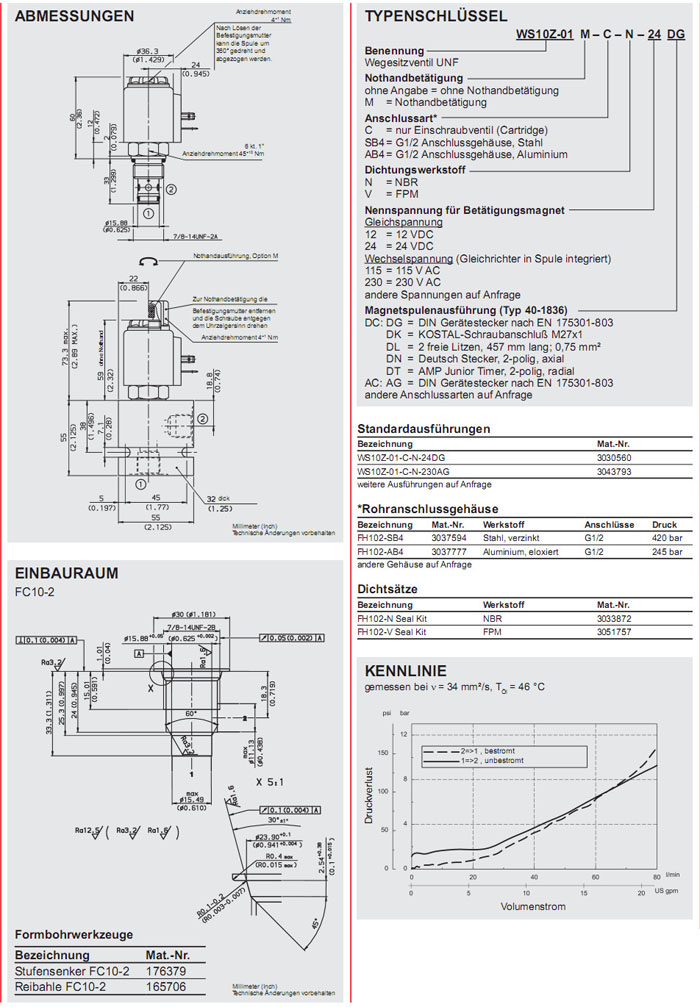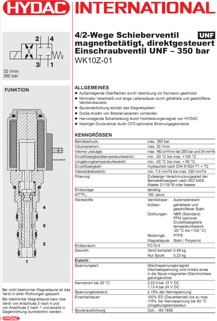 WS10Z-01-C-N-24DG,WS10Z-01-C-N-230AG,HYDAC電磁2/2方向座閥