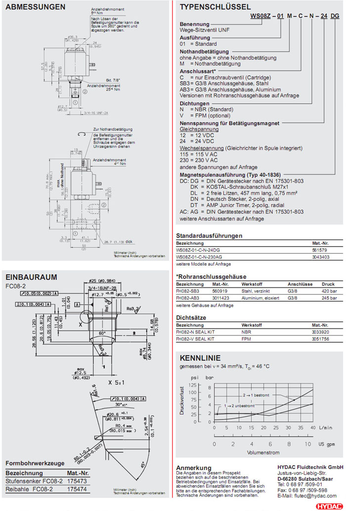 首頁 > 產(chǎn)品&解決方案 > WS08Z-01-C-N-24DG,WS08Z-01-C-N-230AG,HYDAC電磁2/2方向座閥