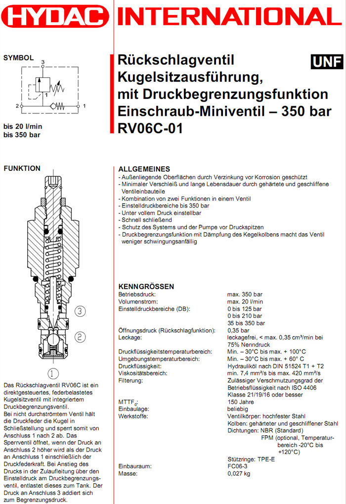 RV06C-01-C-N-180V,RV06C-01-C-N-300V,RV06C-01-C-N-500V,HYDAC止回閥 詳細信息 RV06C-01-C-N-180V,RV06C-01-C-N-300V,RV06C-01-C-N-500V,HYDAC止回閥