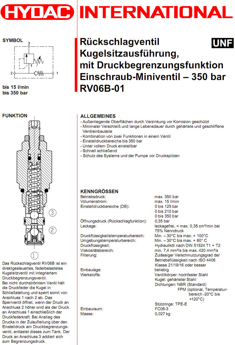 首頁 > 產(chǎn)品&解決方案 > RV06B-01-C-N-300V,RV06B-01-C-N-500V,HYDAC止回閥
